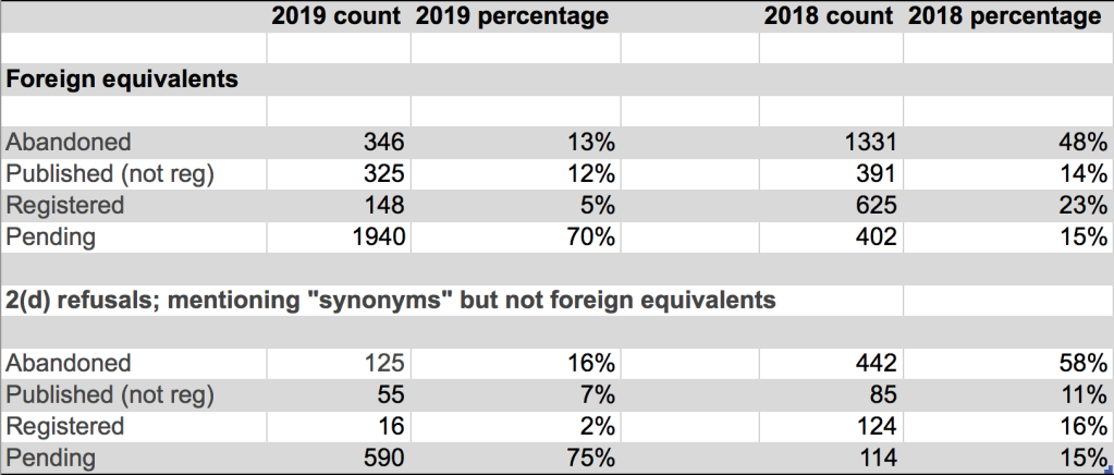 If, however, you run into a functionality refusal or a likelihood of confusion refusal, you’re likely looking at at least one round of substantive back-and-forth. Applications running into these sorts of refusals move forward to publication at a much lower rate, as we’ve detailed in some prior blog posts.