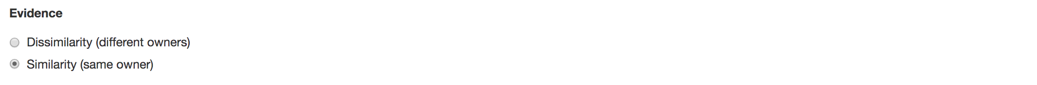 respectively, and change the Evidence option to “Similarity,” as shown below.